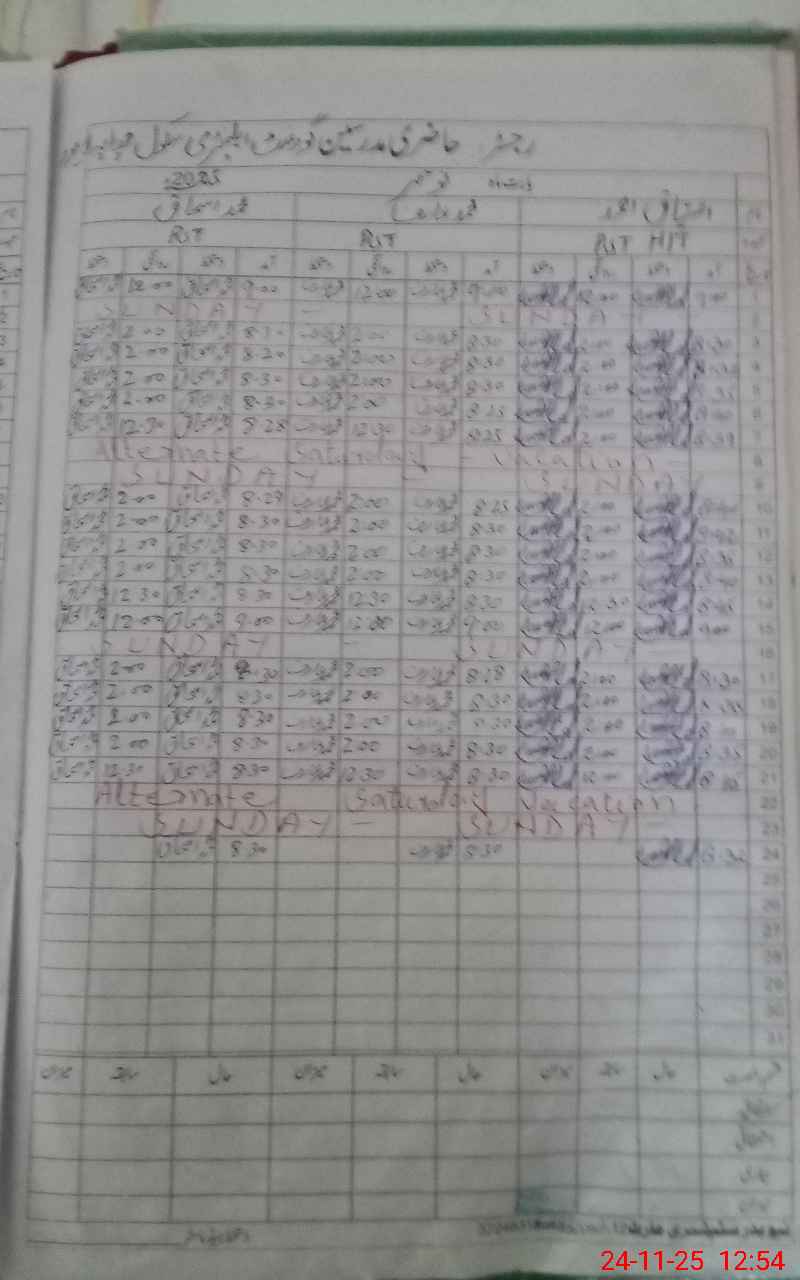 | CNIC | Full Name | Designation | R/C | Absence During Last Calender Month |