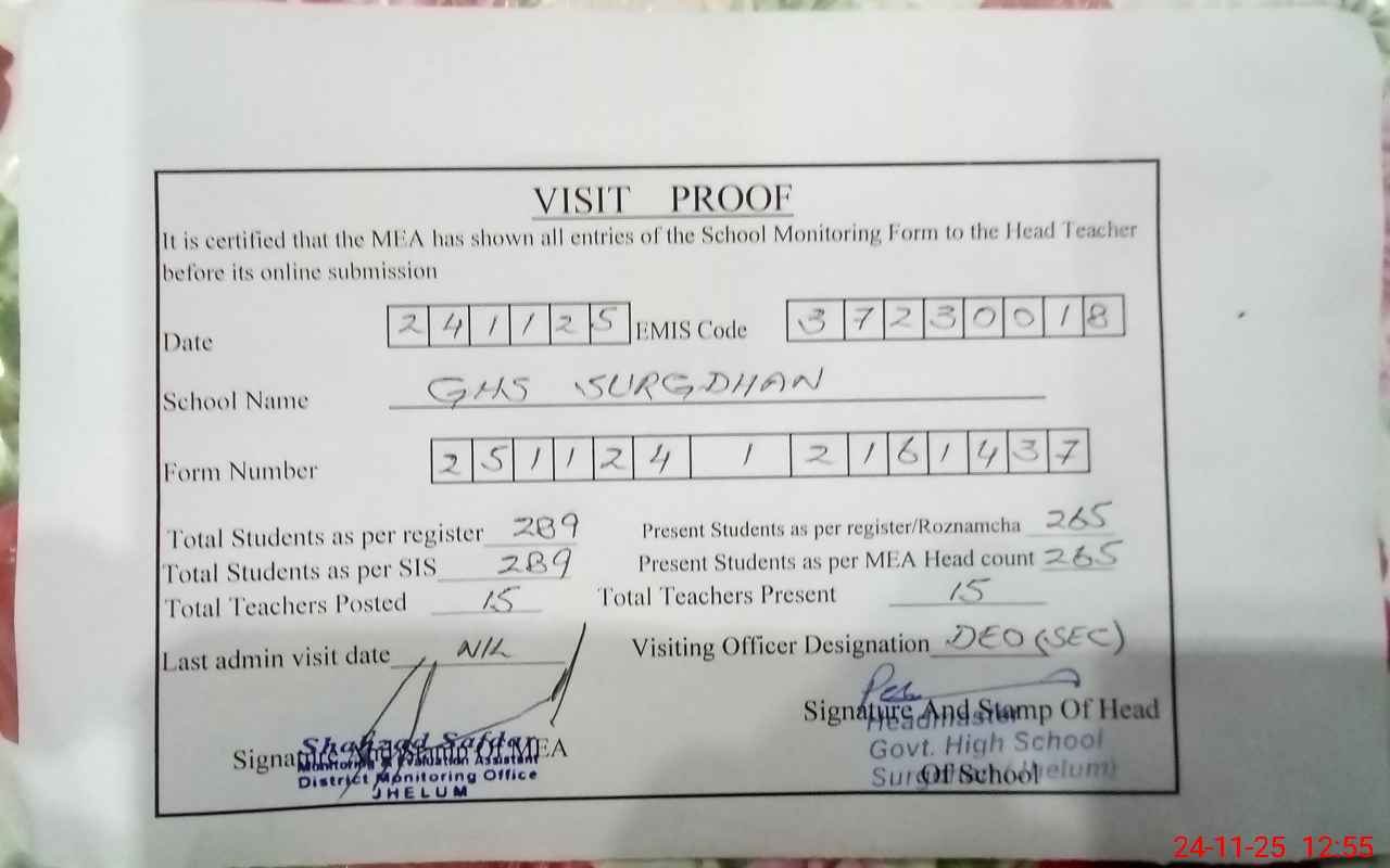| EMIS Code: 37230018 | Name of School: GHS SURGDHAN | |||