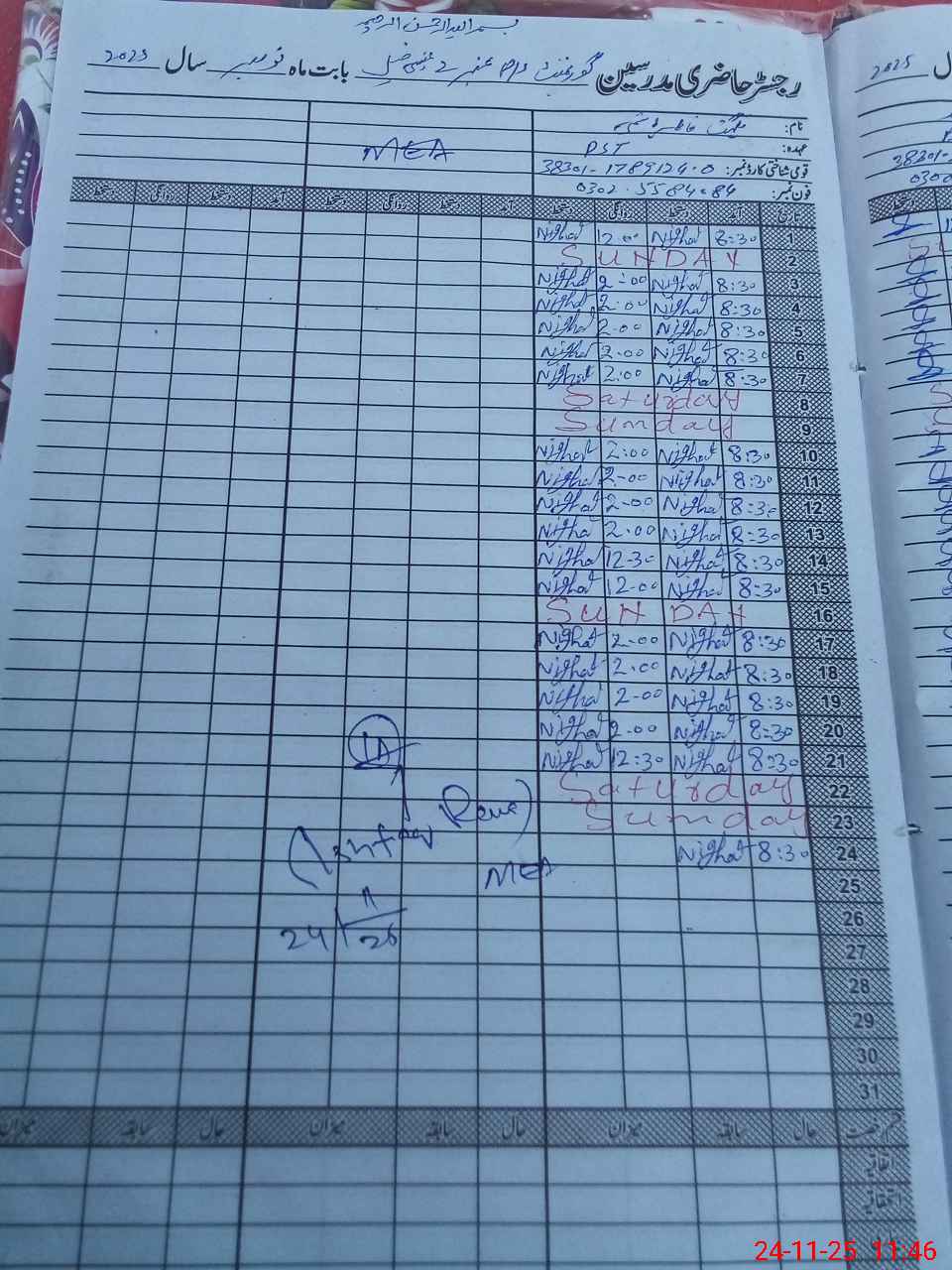 | CNIC | Full Name | Designation | R/C | Absence During Last Calender Month |