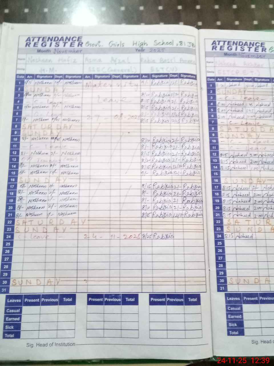 | Leave | Duty | Absent | Maternity | Medical | Ex- Pak |