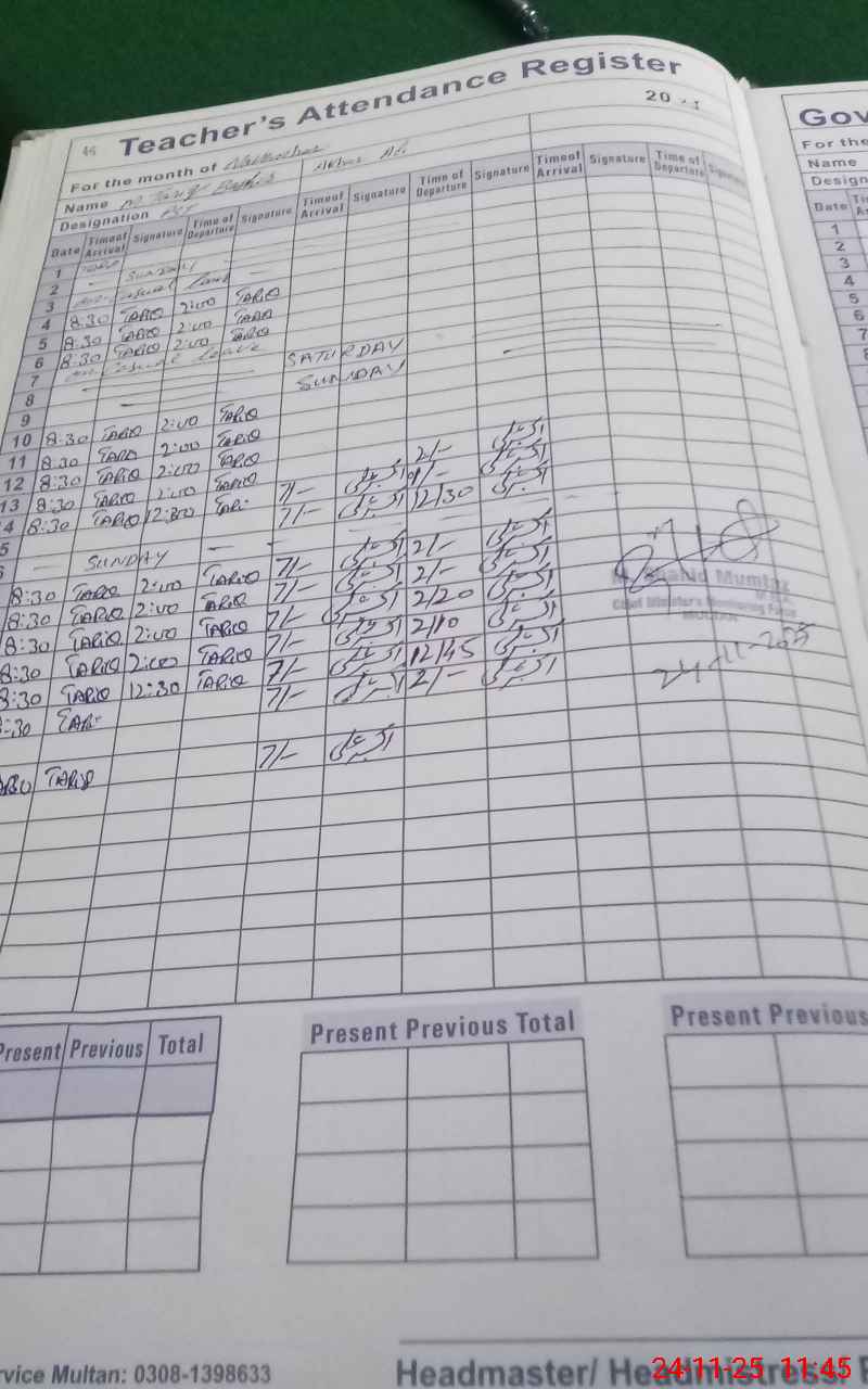 | Name: AB**** LA**** Designation: (School Headmaster's/Headmistress's) S.S.T.(SC) Phone/Cell Number: 03**** |