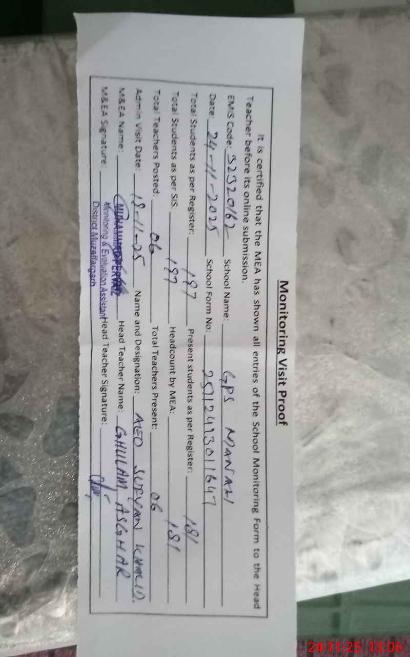 | EMIS Code: 32320162 | Name of School: GPS MANAH | |||