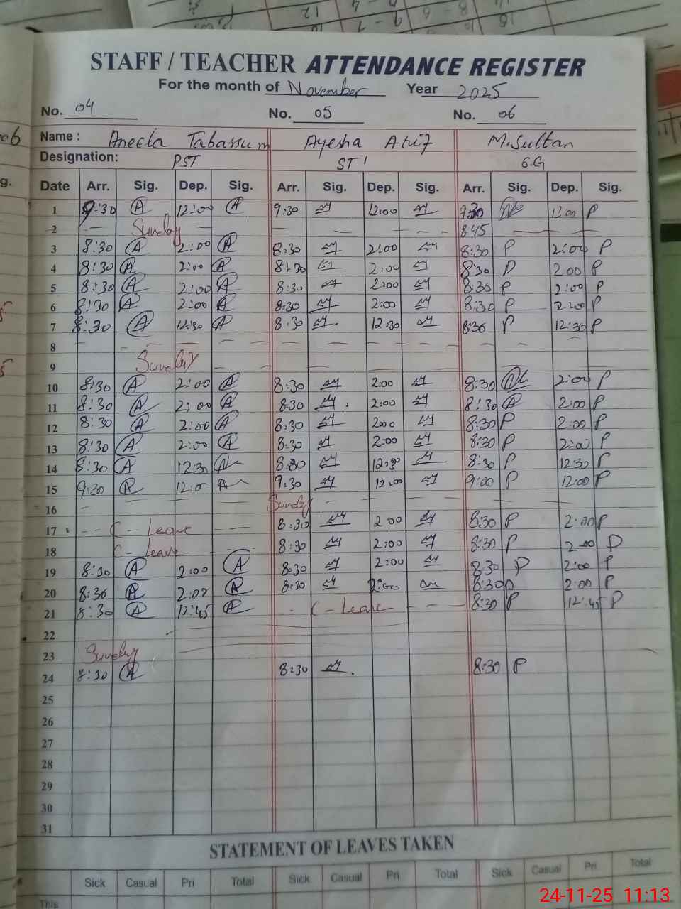 | 34**** | Sa**** Ya**** | PST | Regular | 1 | 26 | 0 | 0 | 0 | 0 | 0 | 0 | 1 | Exam Duty |