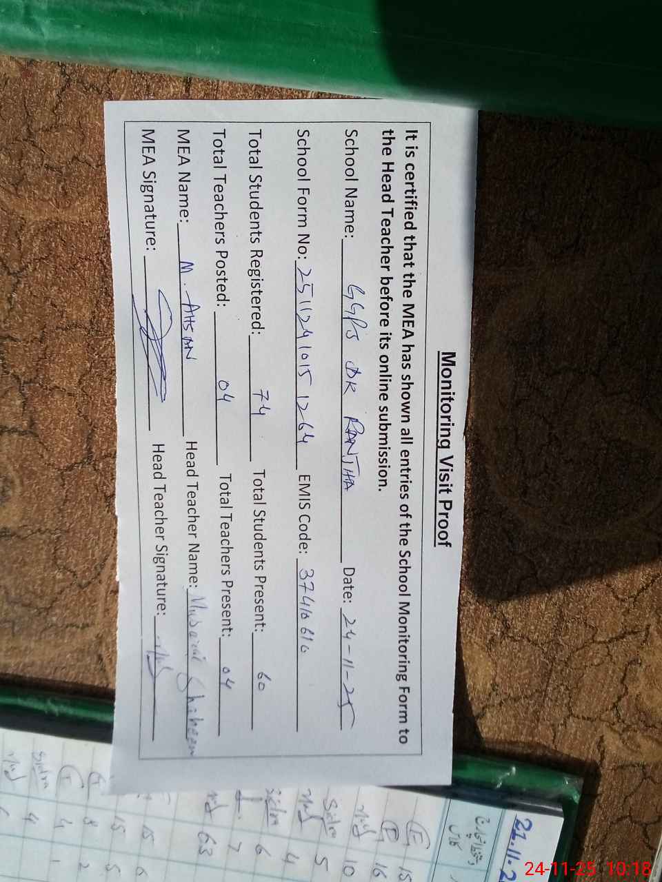 | EMIS Code: 37410610 | Name of School: GGPS DHOK RANJHA | |||