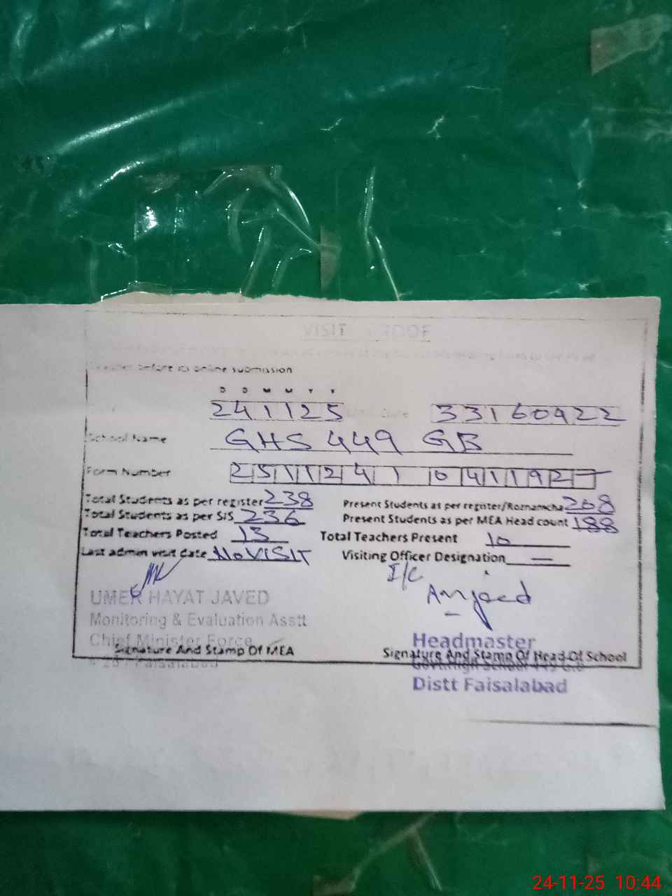 | EMIS Code: 33160422 | Name of School: GHS CHAK 449 GB TANDLIANWALA FSD | |||