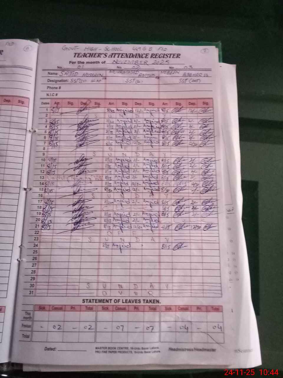 | 33**** | Sa**** Hu**** | Regular | 0 | 0 | 0 | 0 | 0 | 0 | 0 | 0 | 0 | Absent (Un-Authorized) | |