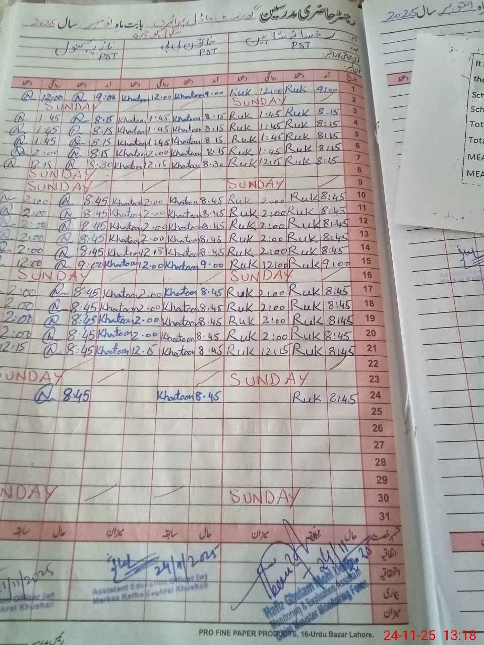 | Name: Kh**** Bi**** Designation: (School Headmaster's/Headmistress's) PST Phone/Cell Number: 03**** |