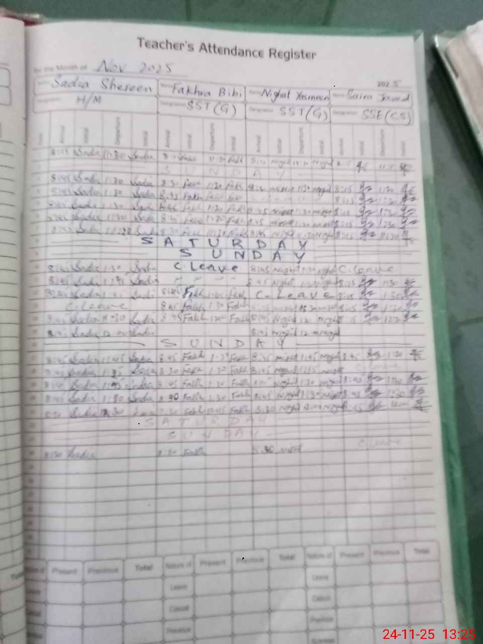 | Leave | Duty | Absent | Maternity | Medical | Ex- Pak |