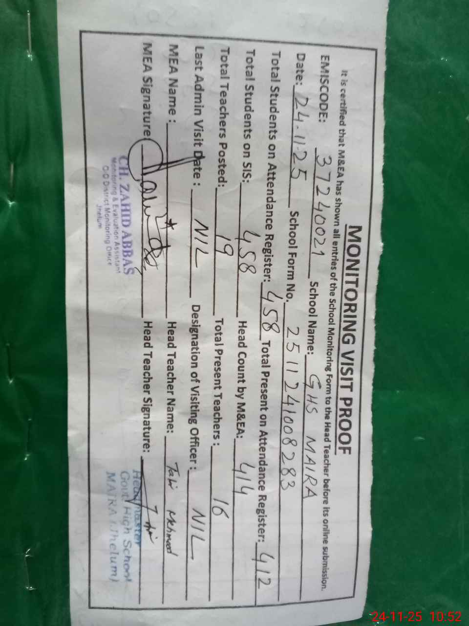 | EMIS Code: 37240021 | Name of School: GHS MAIRA | |||