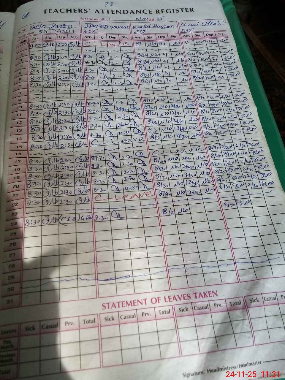 | Name: Ta**** Ja**** Designation: (School Headmaster's/Headmistress's) SST Phone/Cell Number: 03**** |