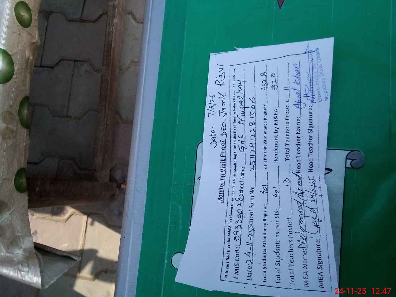 | Attendance Register | Head Teacher | MEA with School | Visit Proof |