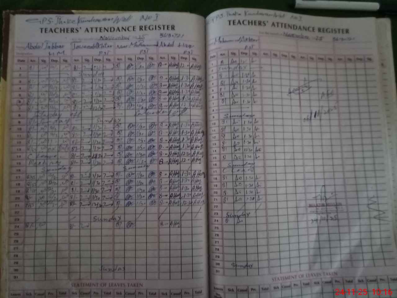 | CNIC | Full Name | Designation | R/C | Absence During Last Calender Month |