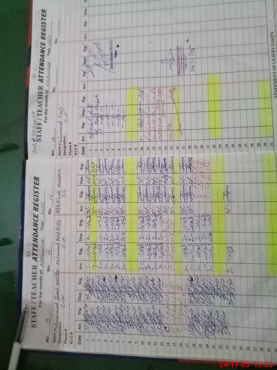 | CNIC | Full Name | Designation | R/C | Absence During Last Calender Month |