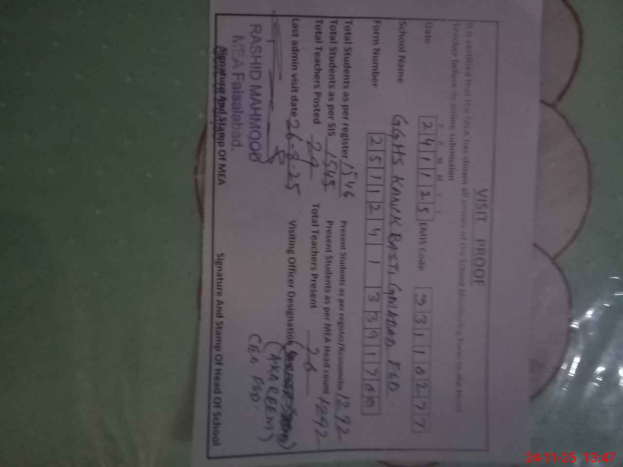 | EMIS Code: 33110277 | Name of School: GGHS KANIK BASTI G.M. ABAD | |||