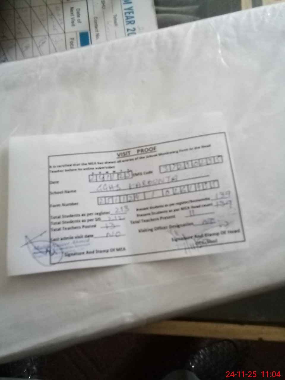 | Attendance Register | Head Teacher | MEA with School | Visit Proof |