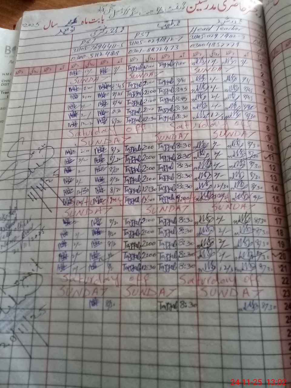 | Name: Mu**** Ra**** Designation: (School Headmaster's/Headmistress's) P S T Phone/Cell Number: 03**** |