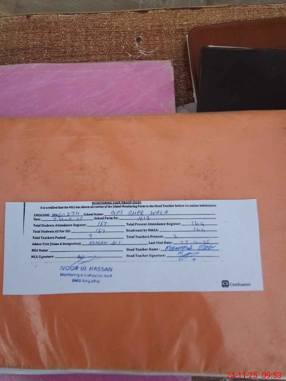 | EMIS Code: 38460234 | Name of School: GPS SHER WALA | |||