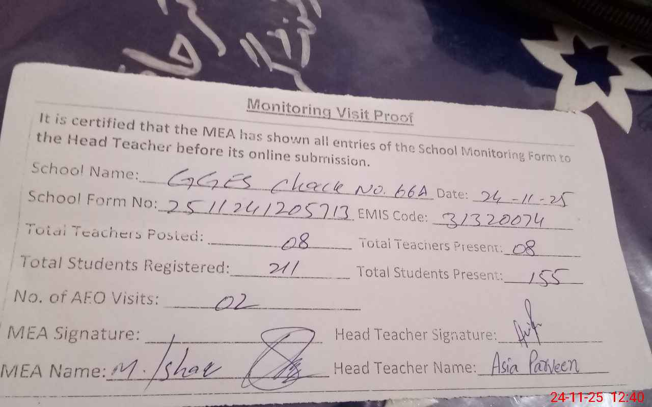 | Certified that this School was Inspected by the Undersigned MEA/DMO Today and the Information Stated Above is as Per Record. | |||||