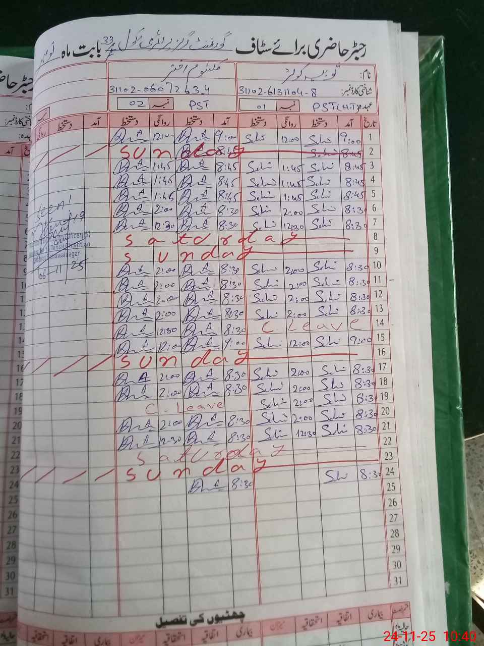 | CNIC | Full Name | Designation | R/C | Absence During Last Calender Month |
