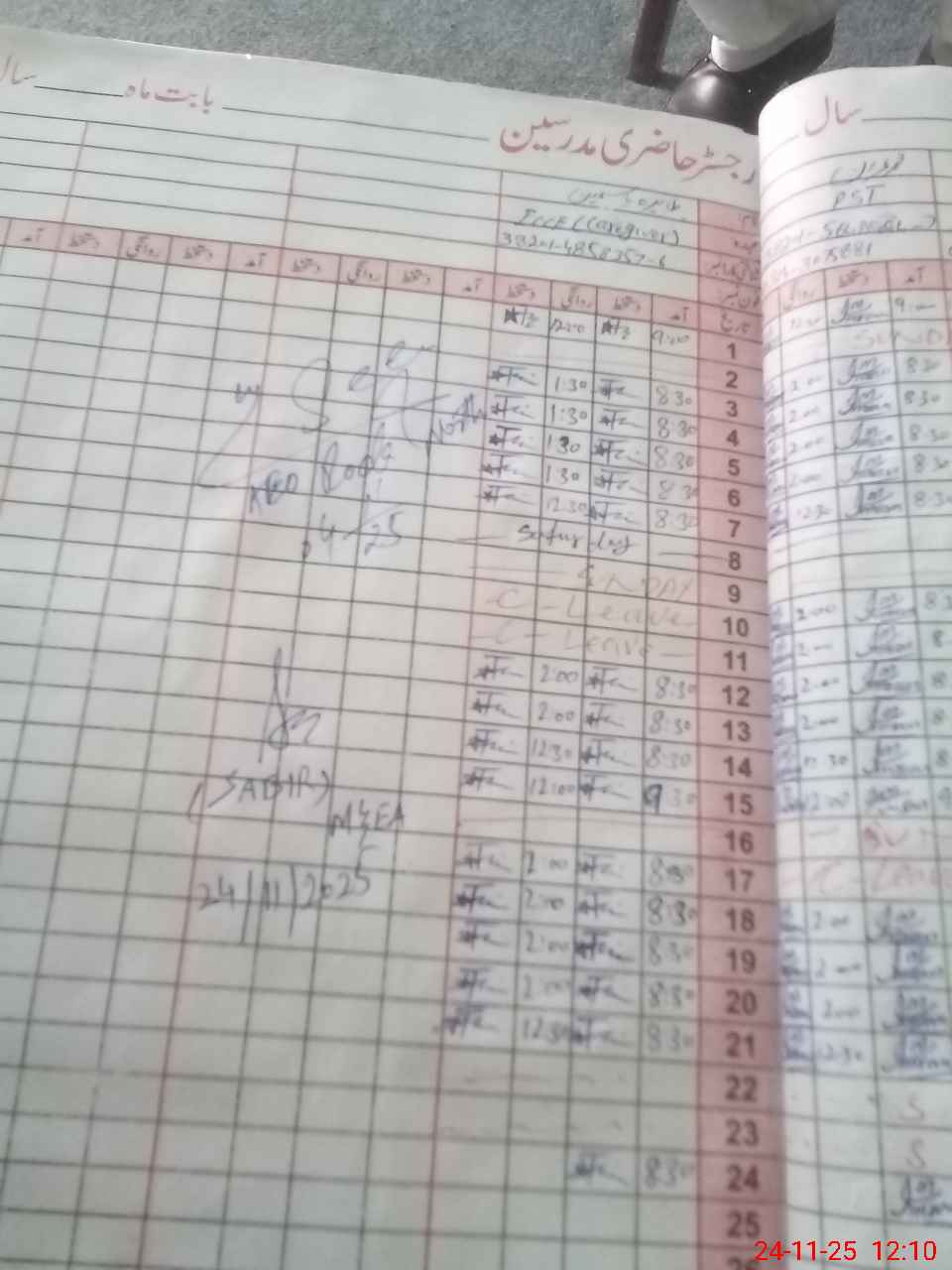 | CNIC | Full Name | Designation | R/C | Absence During Last Calender Month |
