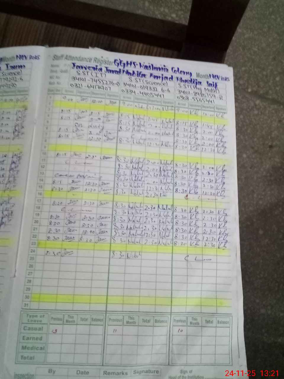 | CNIC | Full Name | Designation | R/C | Absence During Last Calender Month |