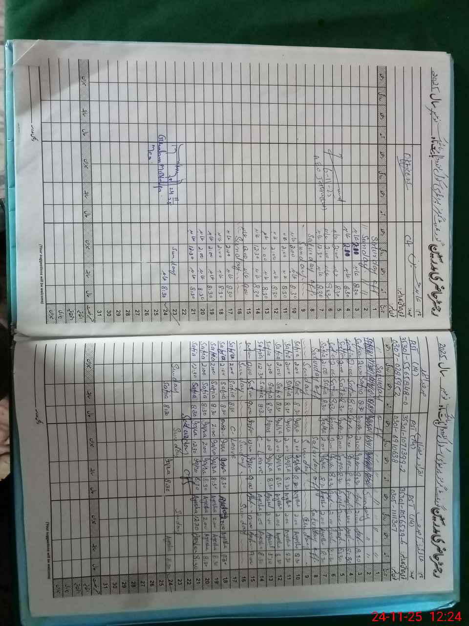 | CNIC | Full Name | Designation | R/C | Absence During Last Calender Month |