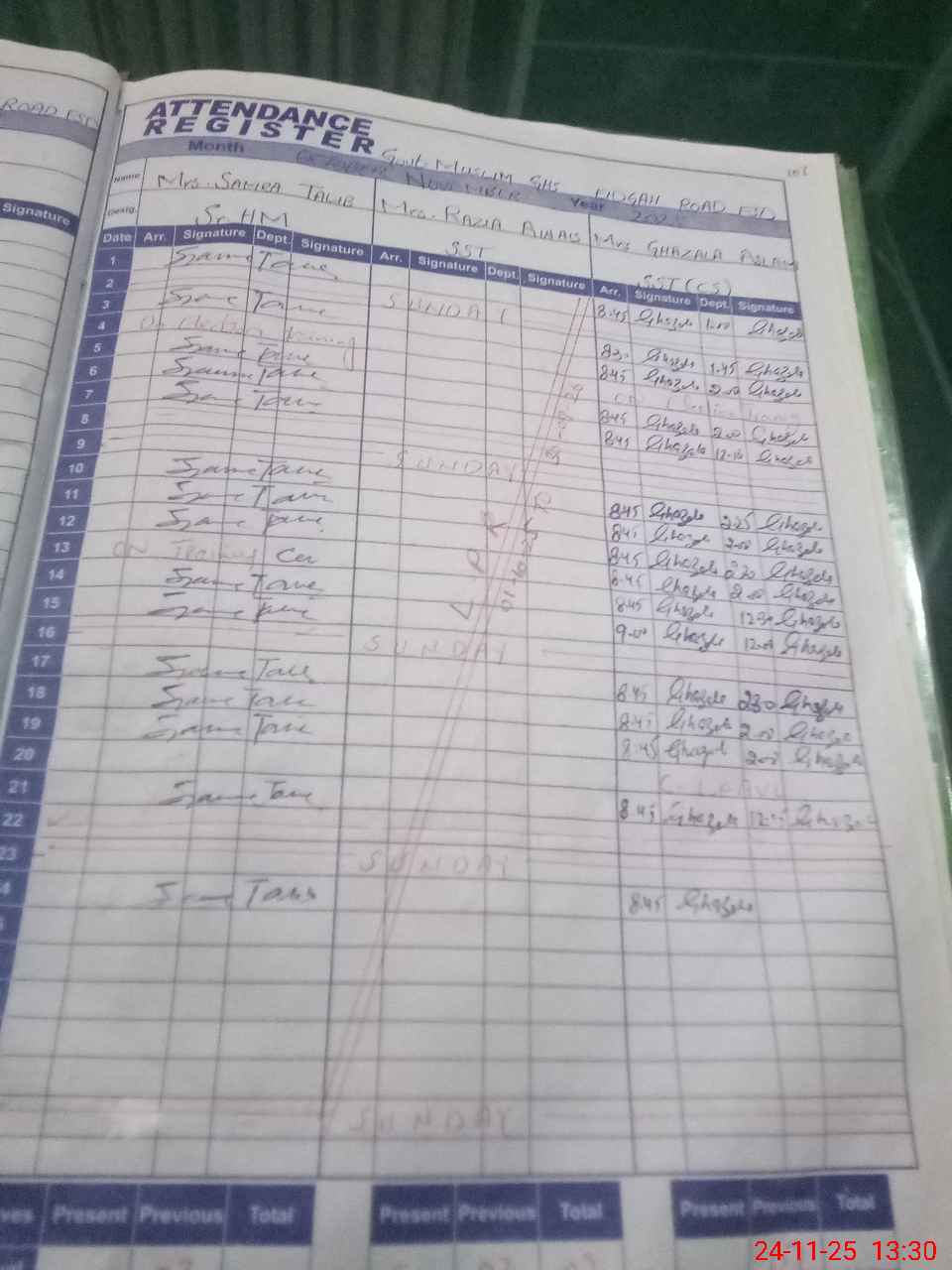 | CNIC | Full Name | Designation | R/C | Absence During Last Calender Month |