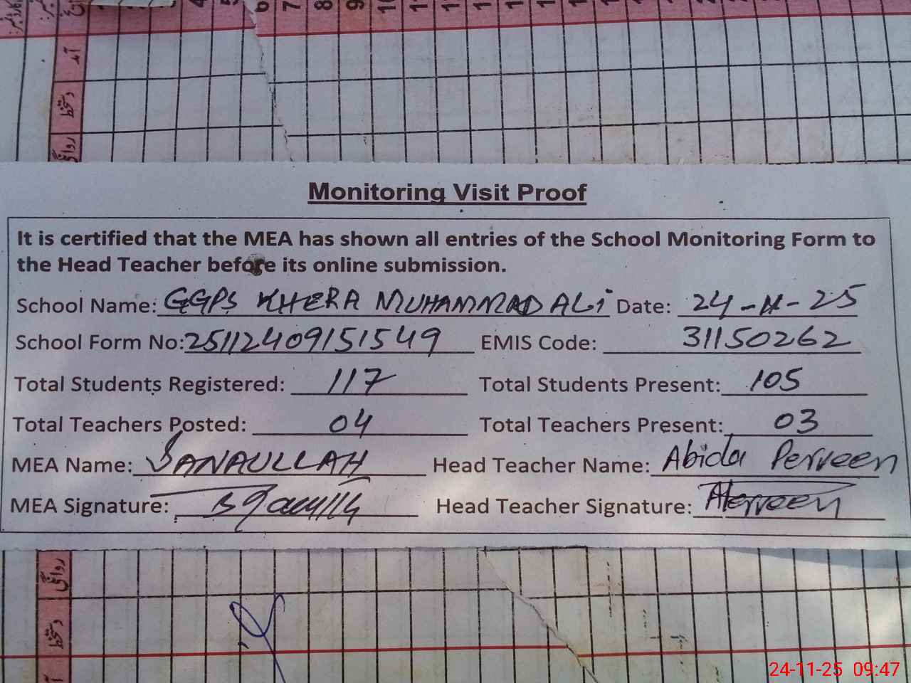 | EMIS Code: 31150262 | Name of School: GGPS KHERA MUHAMMAD ALI | |||
