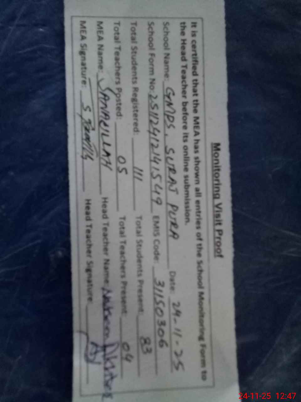 | EMIS Code: 31150306 | Name of School: GMPS SURAJ PURA | |||