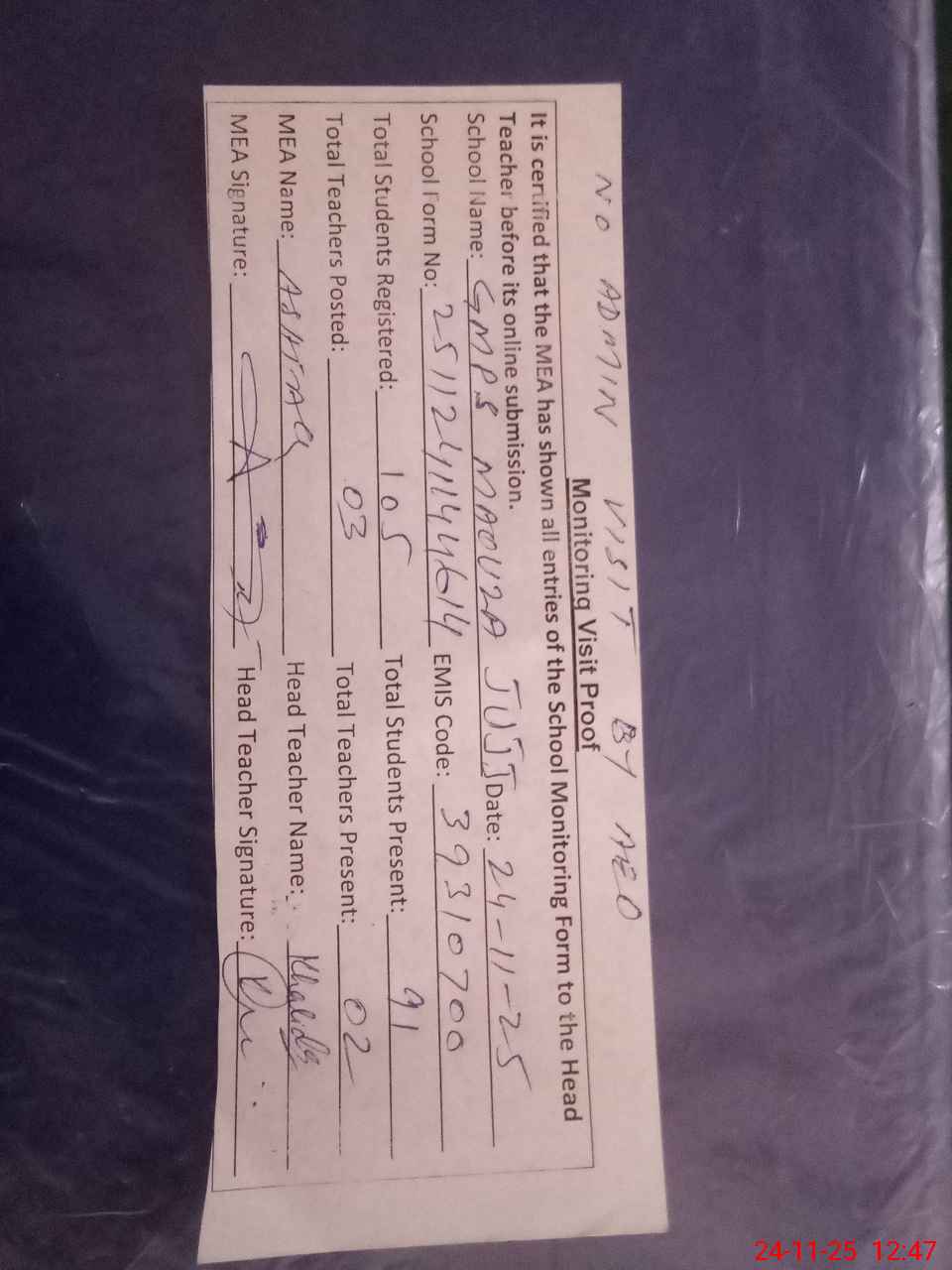 | Certified that this School was Inspected by the Undersigned MEA/DMO Today and the Information Stated Above is as Per Record. | |||||