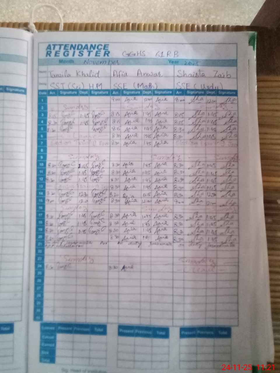 | Name: TA**** KH**** Designation: (School Headmaster's/Headmistress's) In charge HM Phone/Cell Number: 03**** |