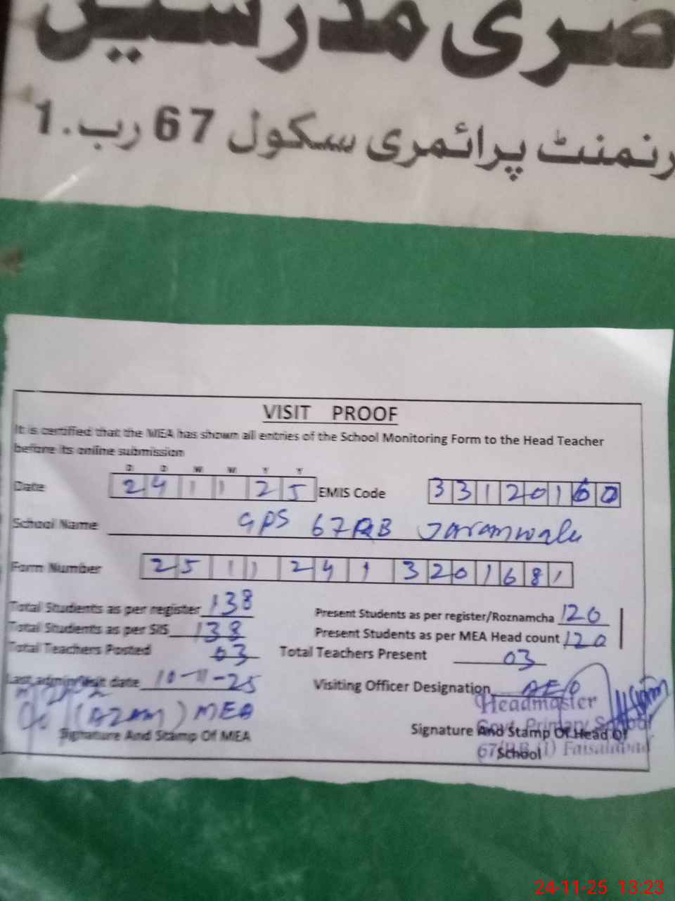 | EMIS Code: 33120160 | Name of School: GPS CHAK 67 RB | |||