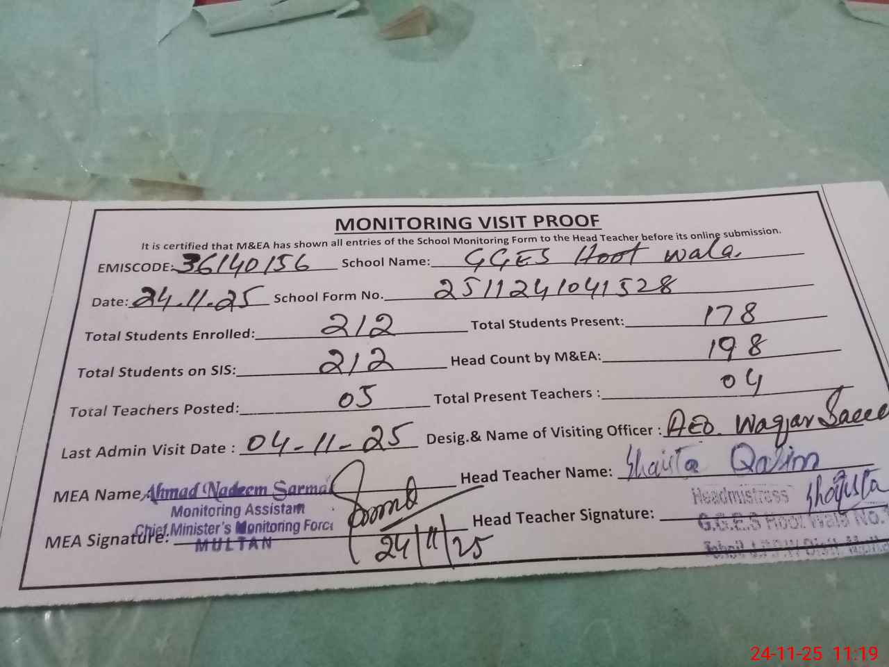 | EMIS Code: 36140156 | Name of School: GGES HOOT WALA NO 1 | |||
