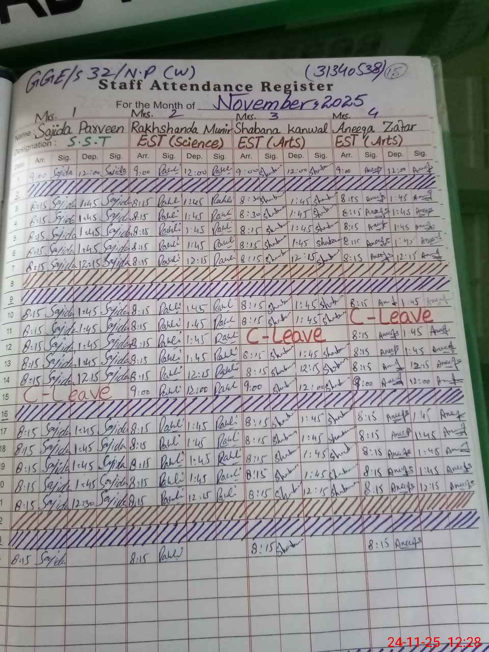 | CNIC | Full Name | Designation | R/C | Absence During Last Calender Month |
