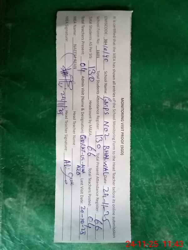 | EMIS Code: 38410140 | Name of School: GMPS NO.2 BHALWAL | |||
