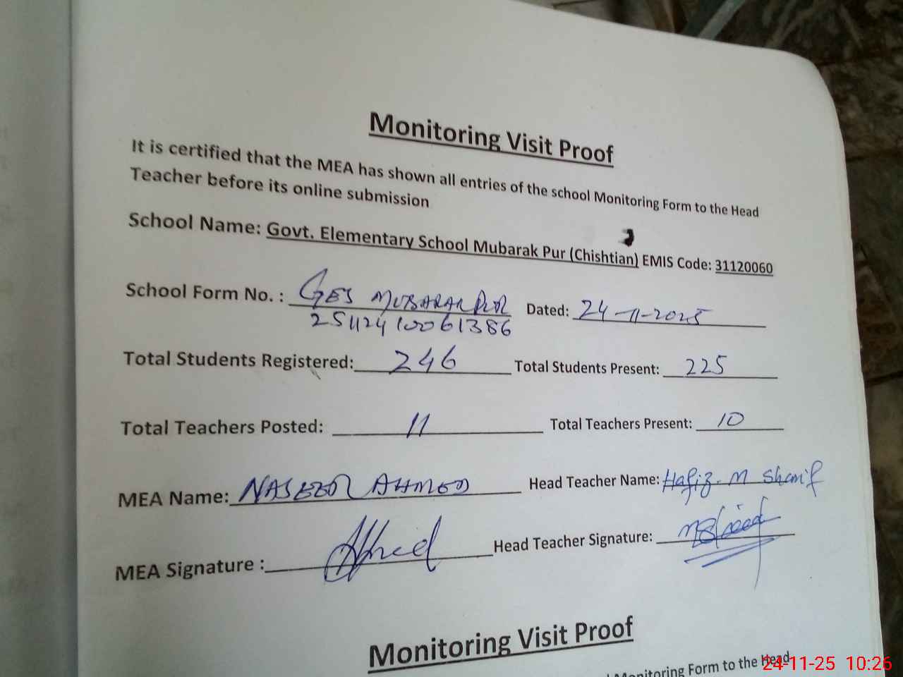 | EMIS Code: 31120060 | Name of School: GES MUBARAK PUR | |||