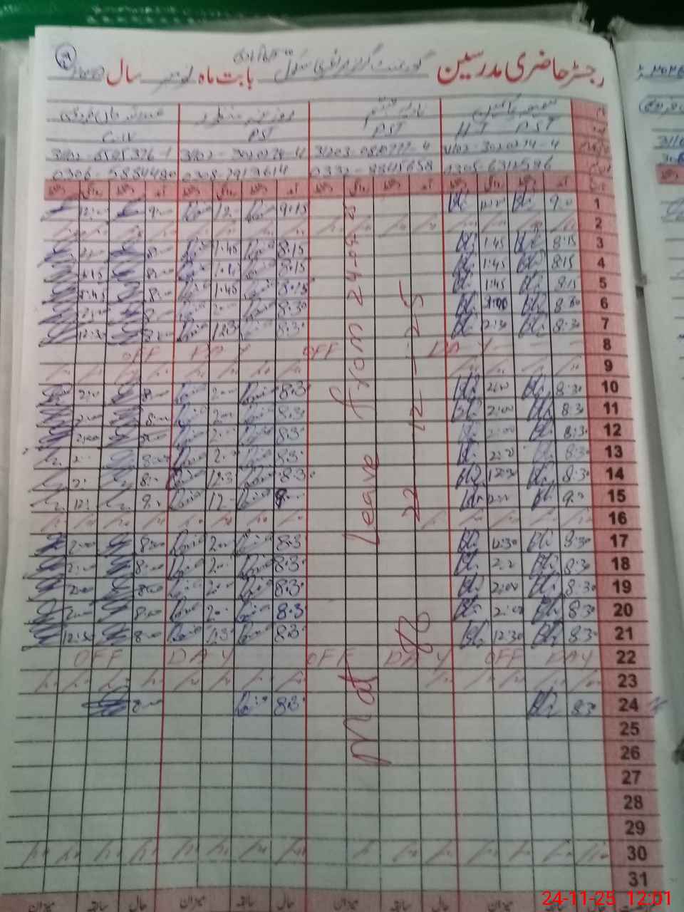 | CNIC | Full Name | Designation | R/C | Absence During Last Calender Month |