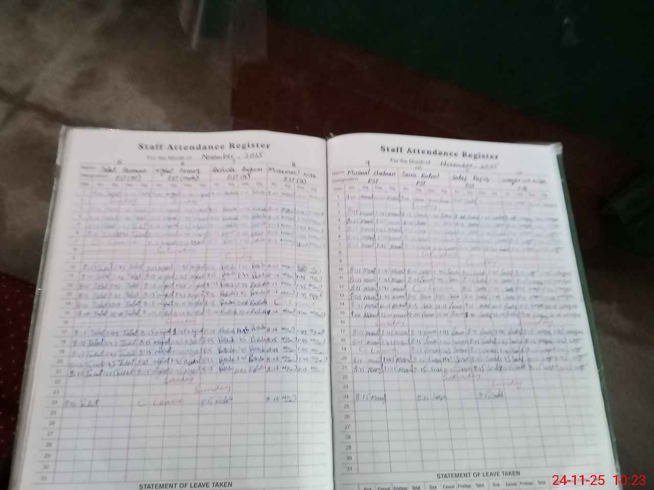 | Leave | Duty | Absent | Maternity | Medical | Ex- Pak |