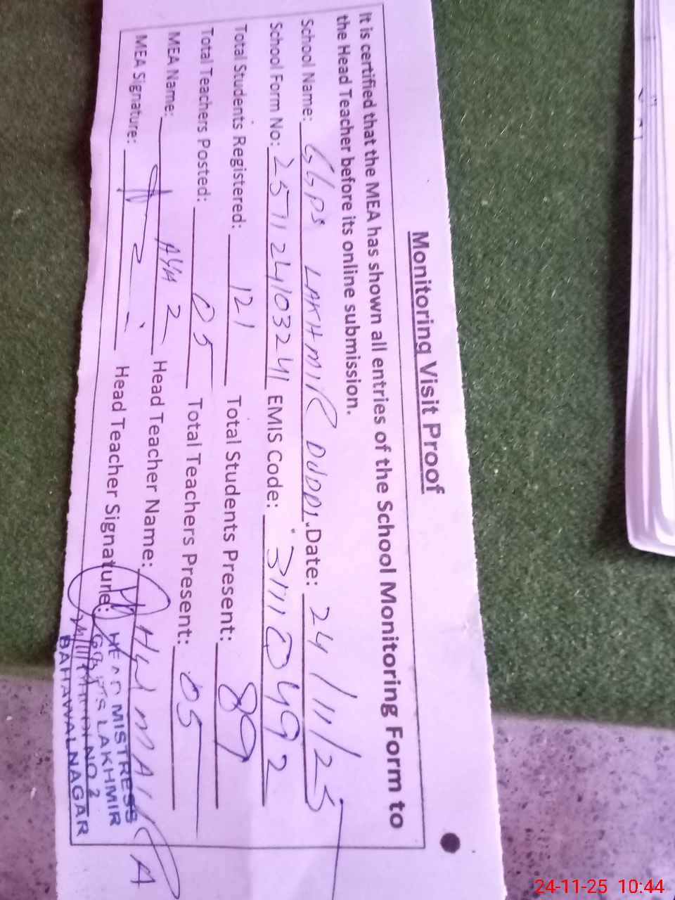 | EMIS Code: 31110492 | Name of School: GGPS LAKHMIR DHUDI NO 2 | |||