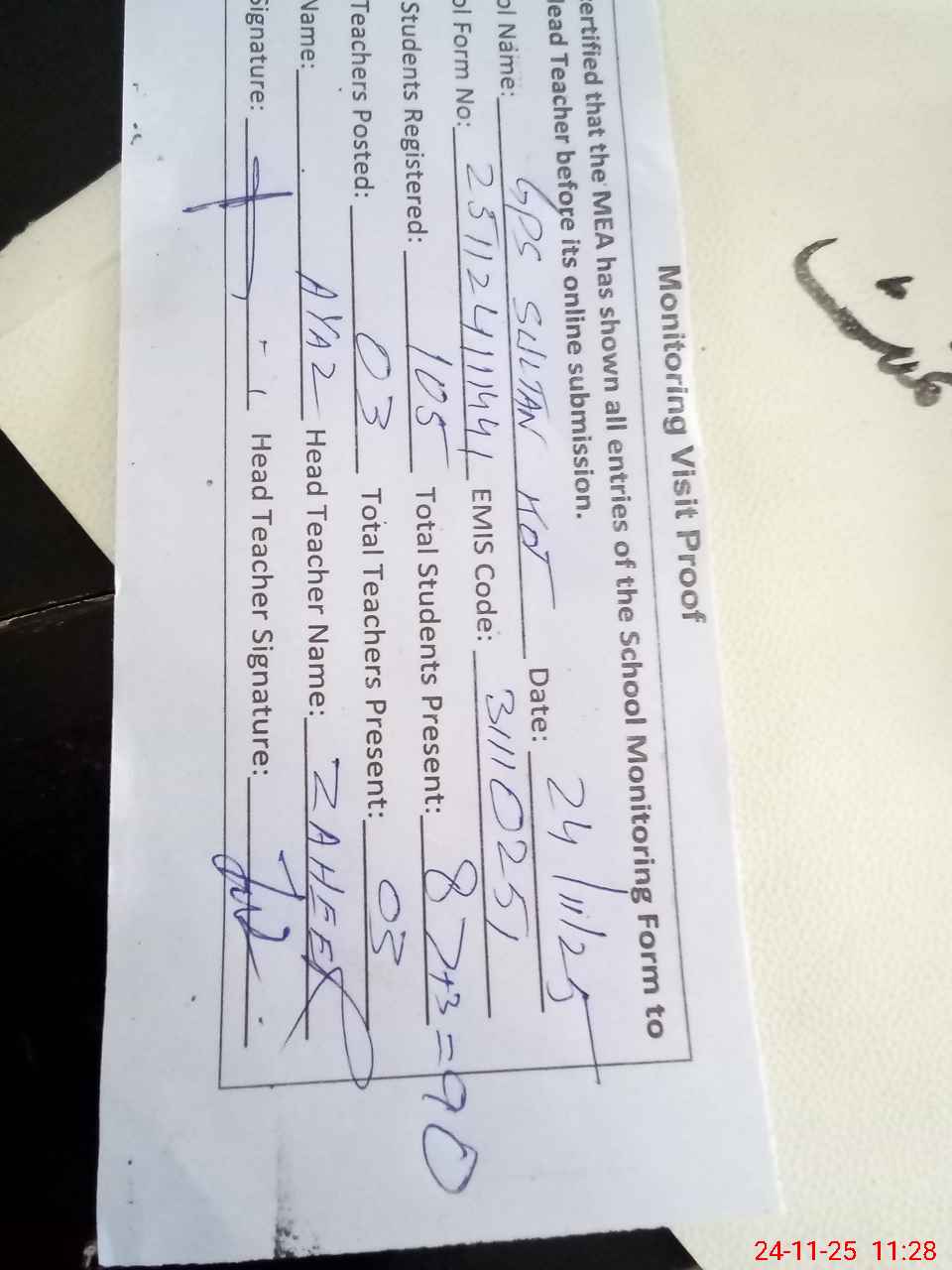 | EMIS Code: 31110251 | Name of School: GPS SULTAN KOT | |||