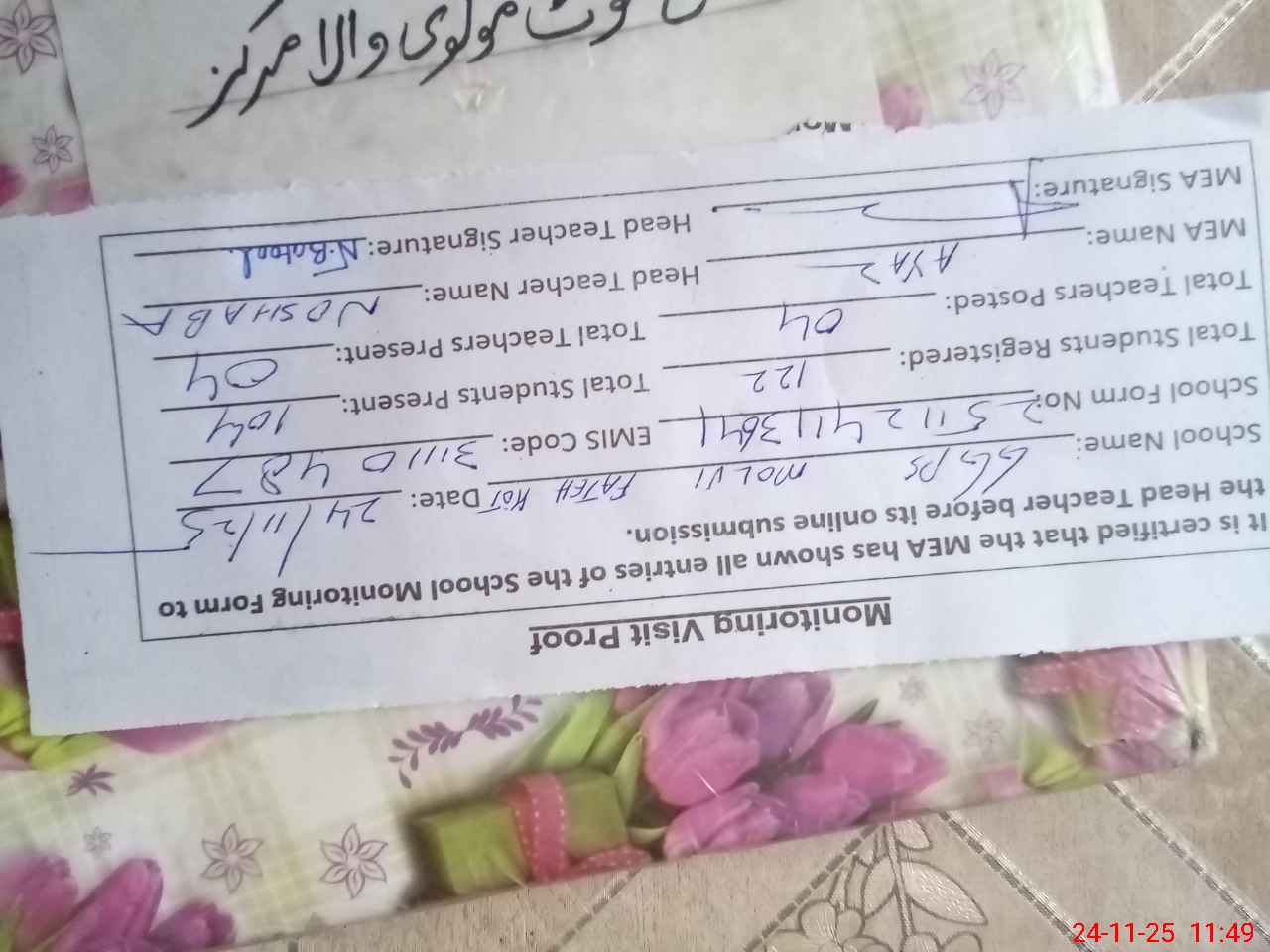 | Certified that this School was Inspected by the Undersigned MEA/DMO Today and the Information Stated Above is as Per Record. | |||||