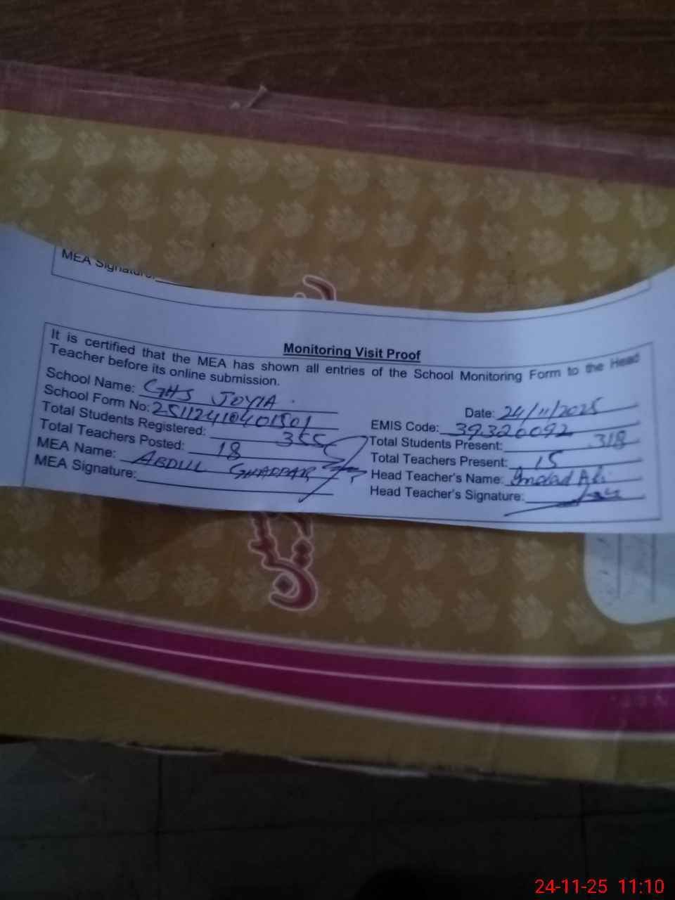 | EMIS Code: 39320092 | Name of School: GHS JOYIA | |||