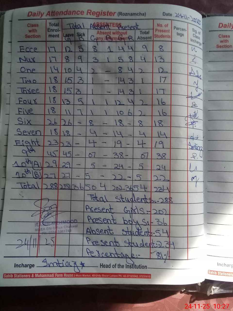 | Attendance Register | Head Teacher | MEA with School | Visit Proof |