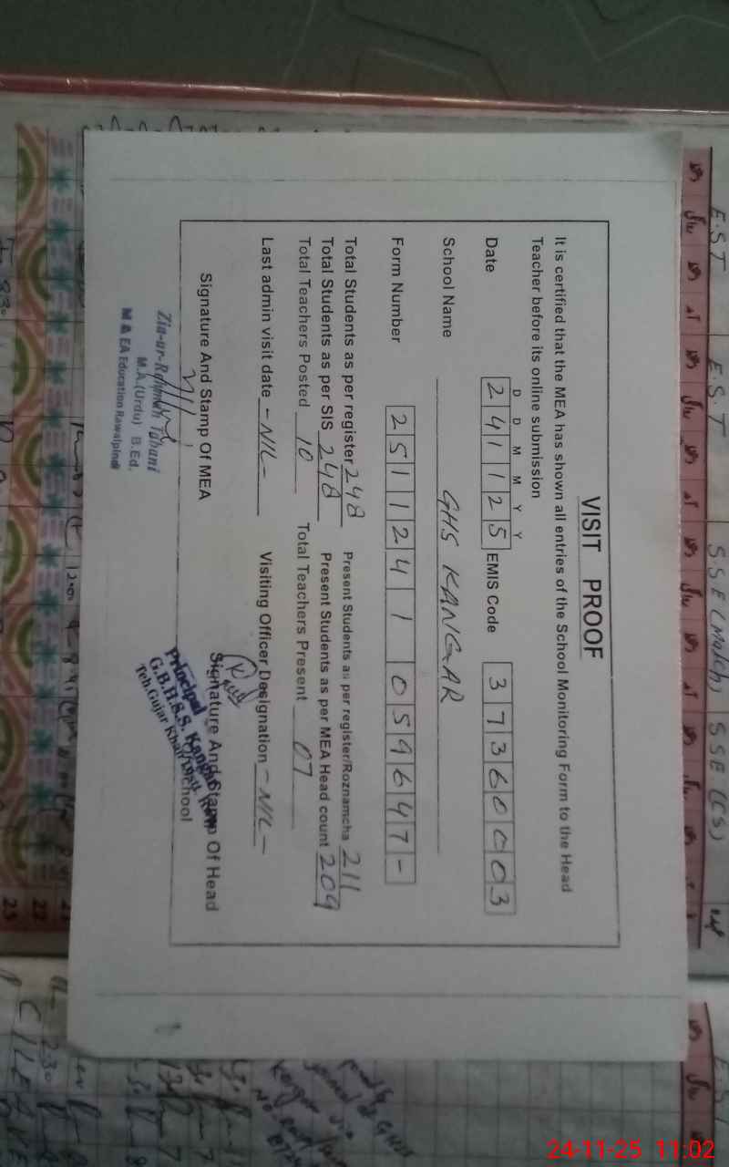 | EMIS Code: 37360003 | Name of School: GHS KANGAR | |||