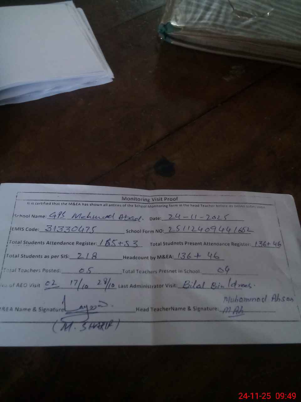 | EMIS Code: 31330475 | Name of School: GPS MAHMOOD ABAD | |||