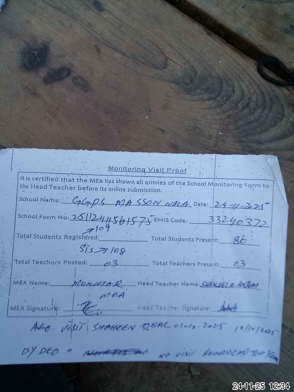 | EMIS Code: 33240372 | Name of School: GGPS MASSOW WALA | |||