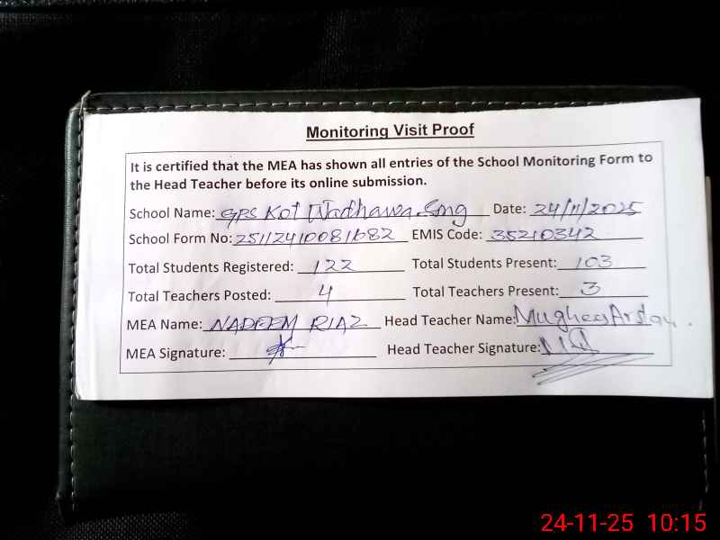 | EMIS Code: 35210342 | Name of School: GPS KOT WADHAWA SIGH | |||