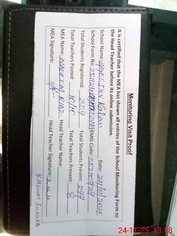 | EMIS Code: 35210729 | Name of School: GGES DEV KALAN LINK FEROZ PUR ROAD | |||