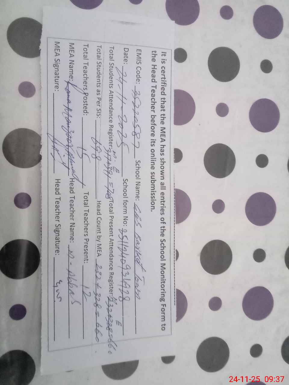 | EMIS Code: 35220587 | Name of School: GES BARKAT TOWN SHAHDARA (EX-MCL) | |||