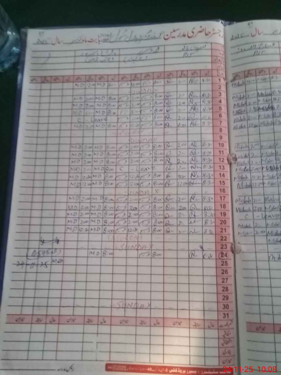 | Leave | Duty | Absent | Maternity | Medical | Ex- Pak |